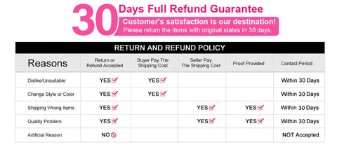 1) If you want to return within 30 days, please keep the original condition of the item, and the items that have been used or washed cannot be returned. (All returned items should be sent in their original condition and package.Products must be unwashed, conditioning, installed, colored or bleached)