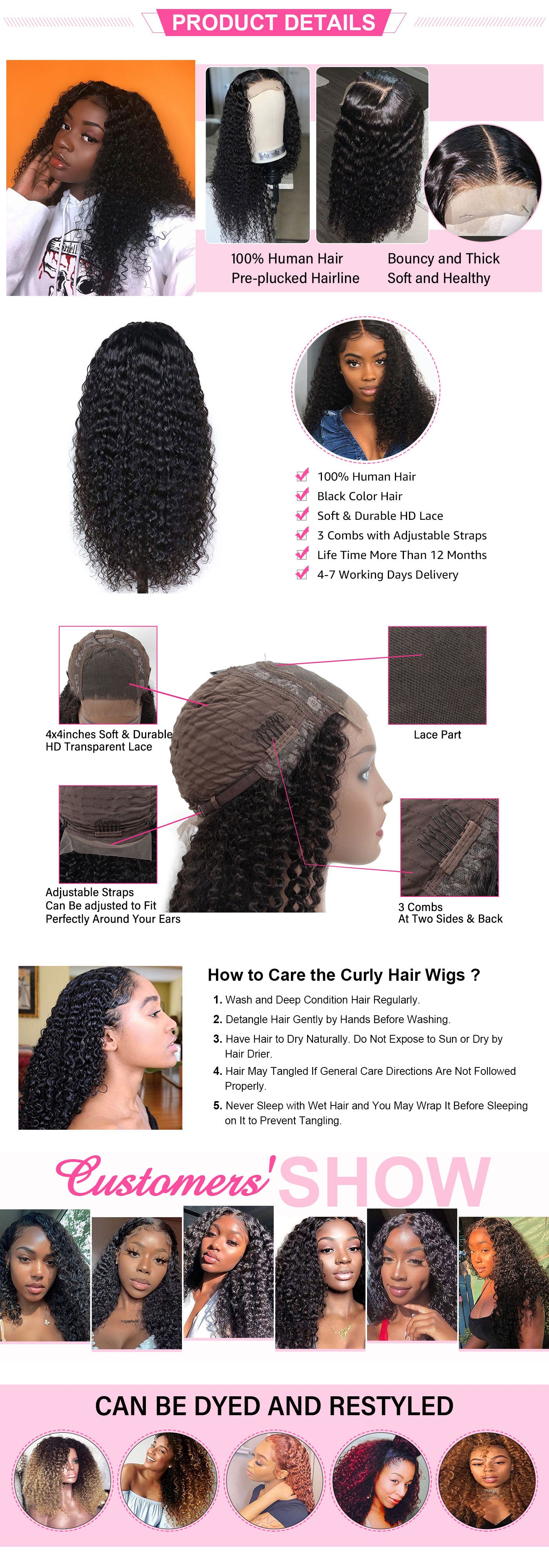 Kinky Curly Human Hair Wigs For Women Jerry Curly 4x4 Lace Closure Wig Prelucked Hairline