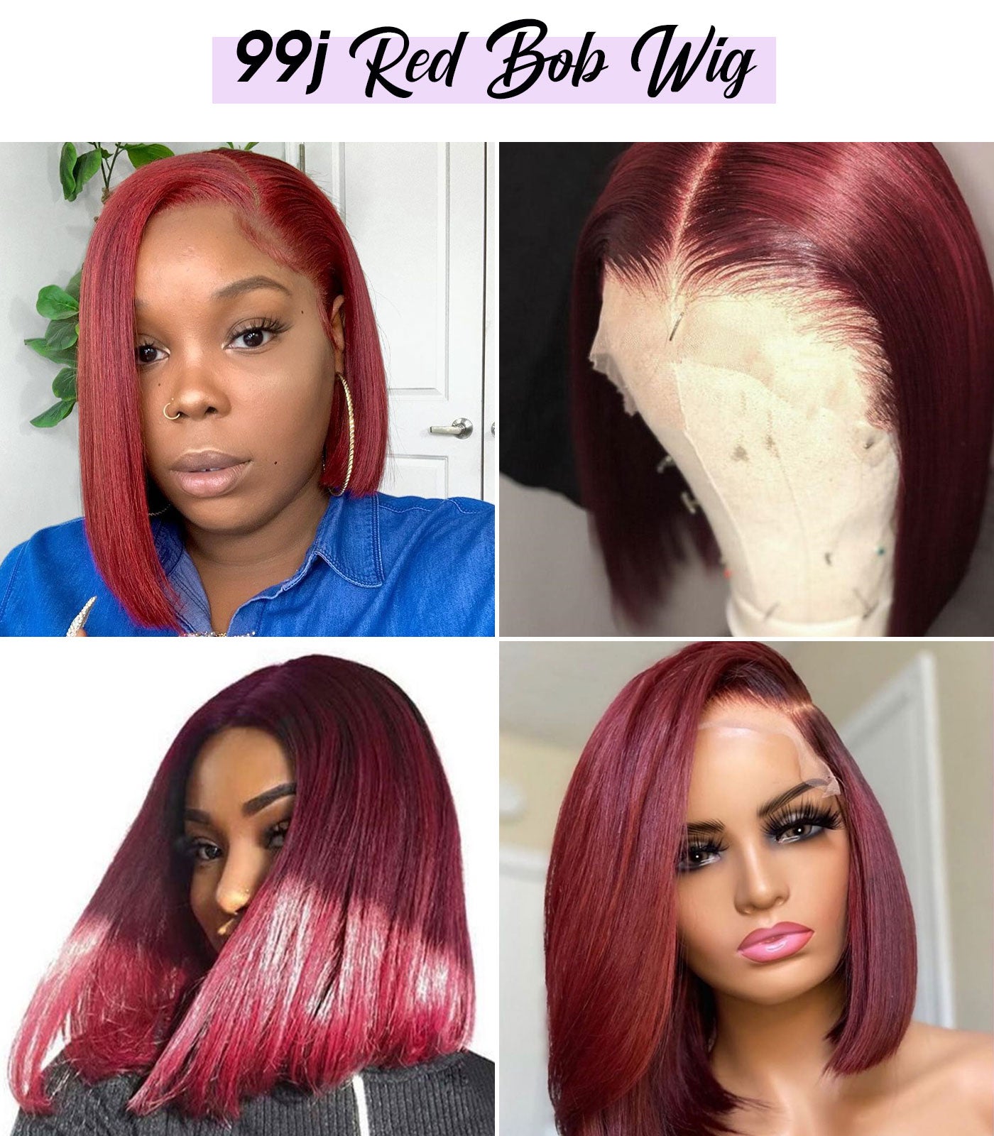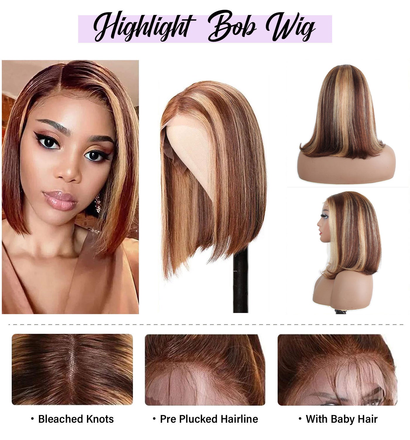 Highlight 4/27 Color & 99J Color Bob Wigs Human Virgin Hair Preplucked Lace Front Wigs