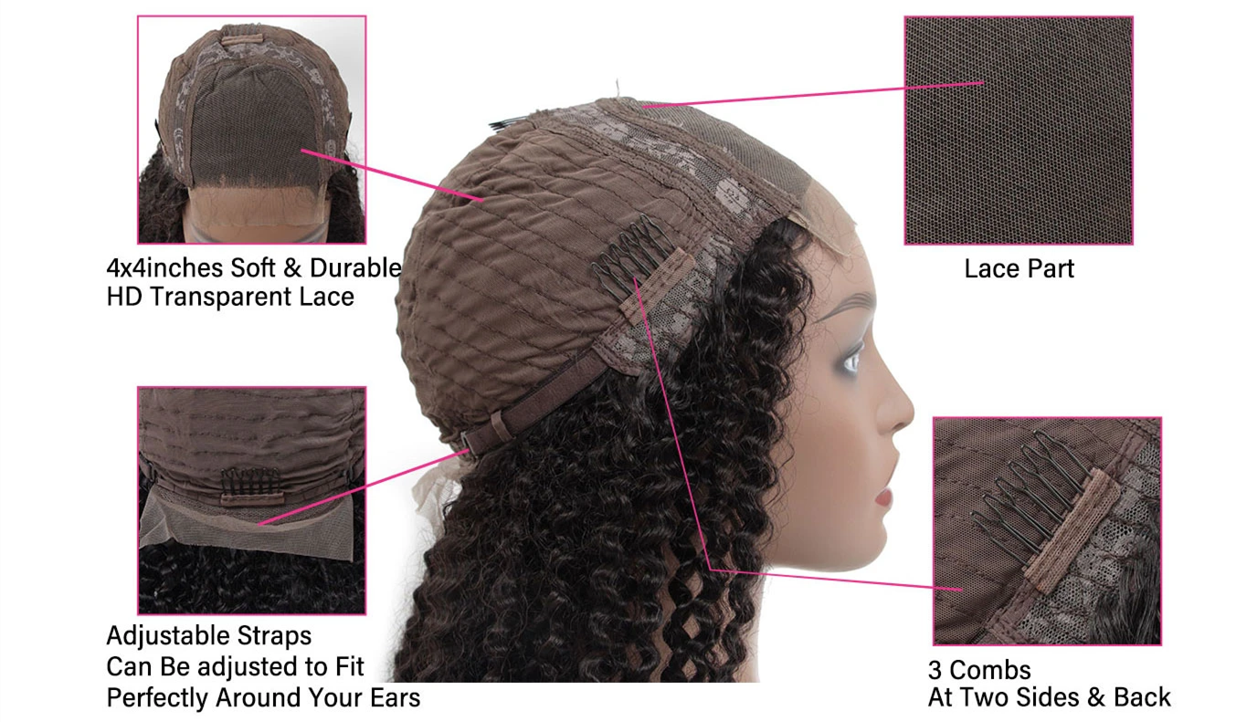 Afro Curly 4x4 Lace Closure Wigs Preplucked Human Hair Skin Melt Lace Wigs for Women