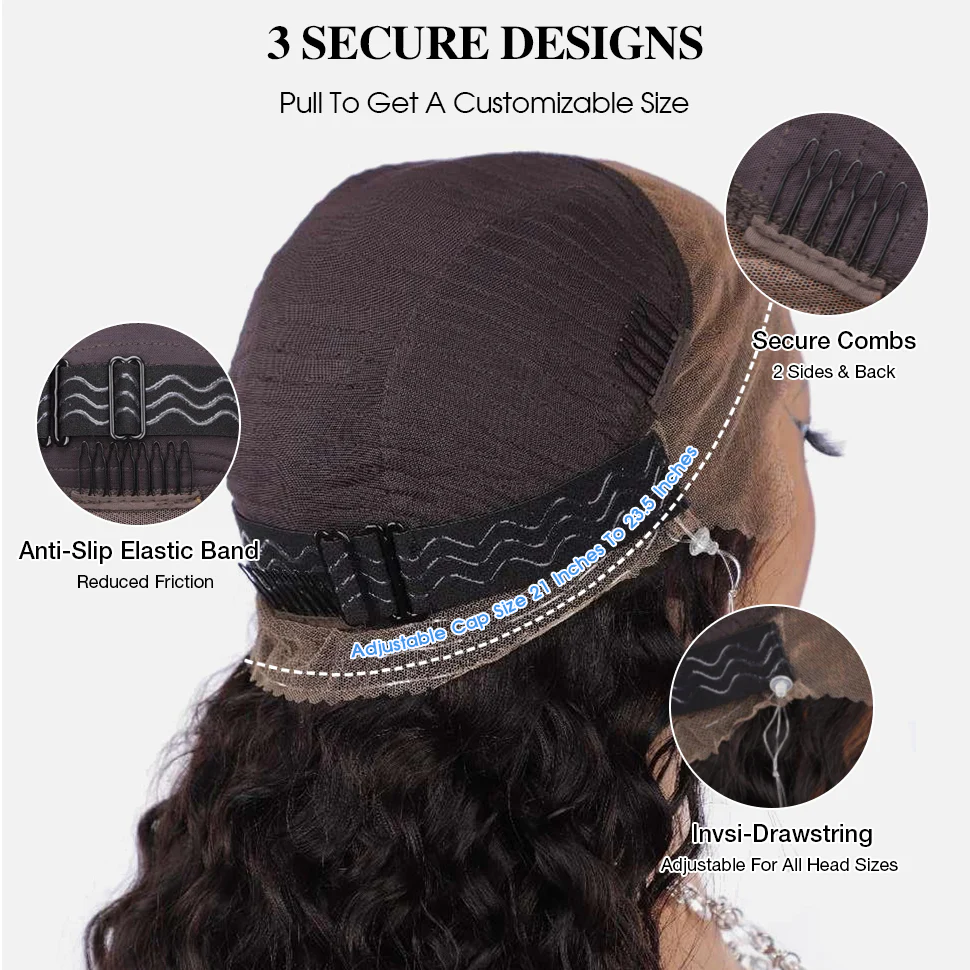 Invisible Strap 360 Lace Bleached Knot Pre-Cut Lace Water Wave Wig