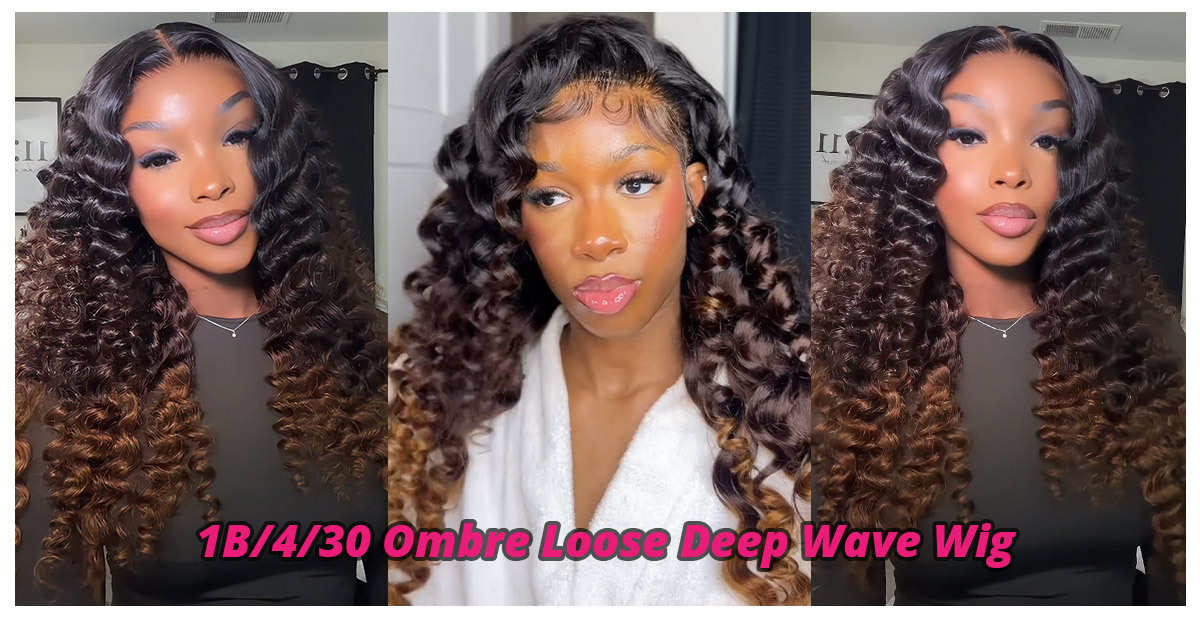 Ombre Loose Deep Wave 13x4 Lace Frontal Wig Brown Colored Wear To Go Human Hair Wigs