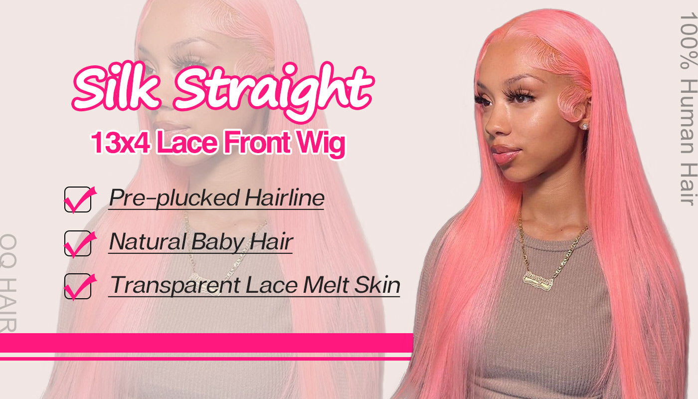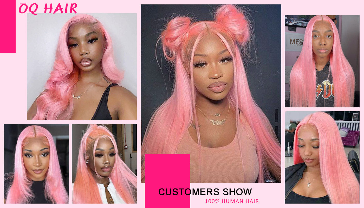 Salmon Pink Color 13*4 Lace Front Wig Human Hair Color Wig