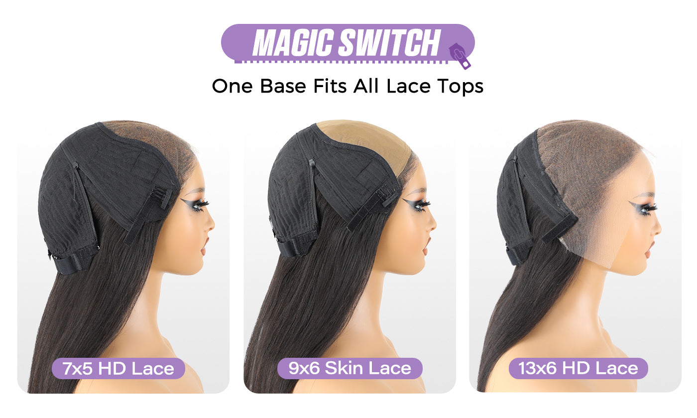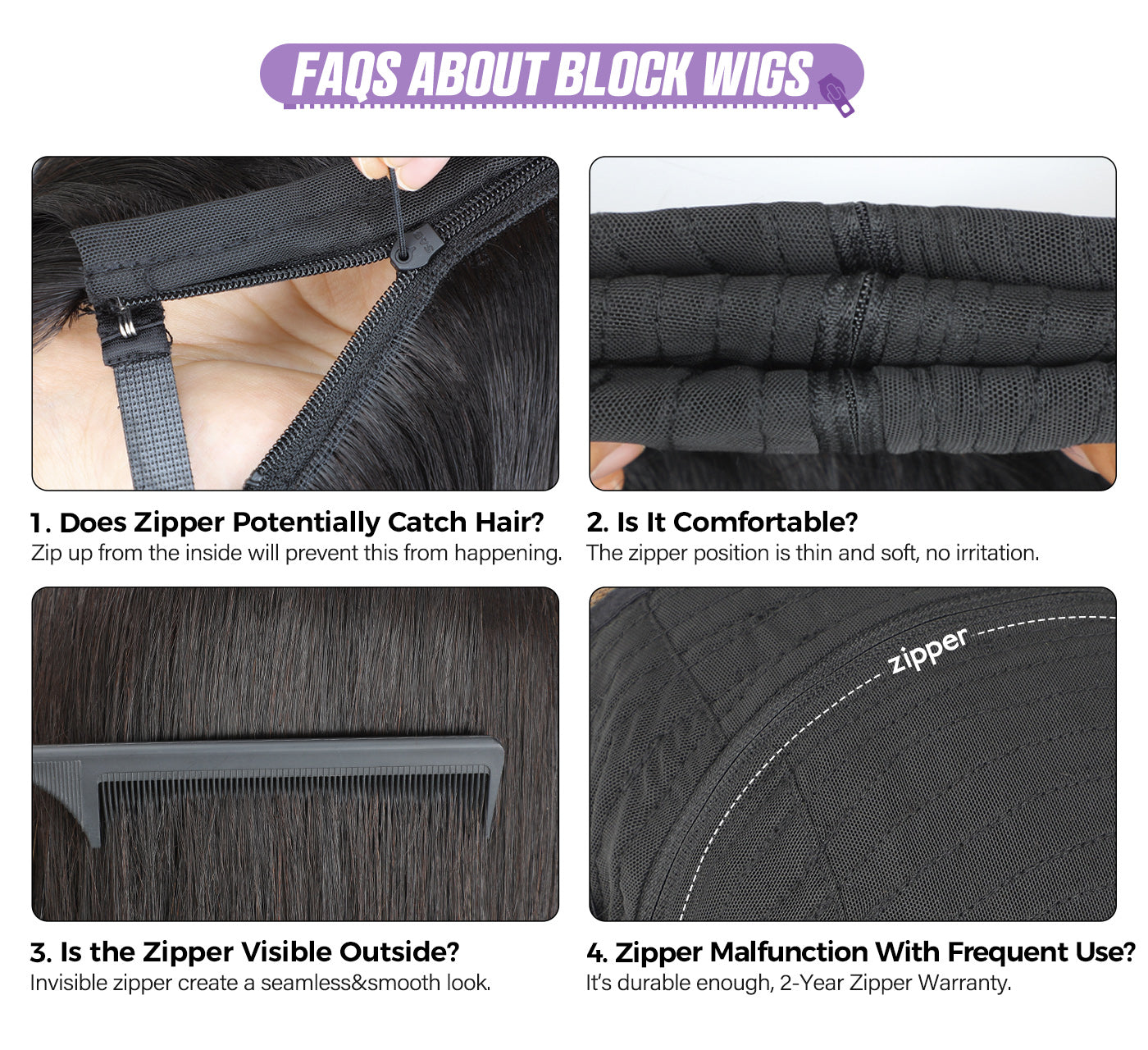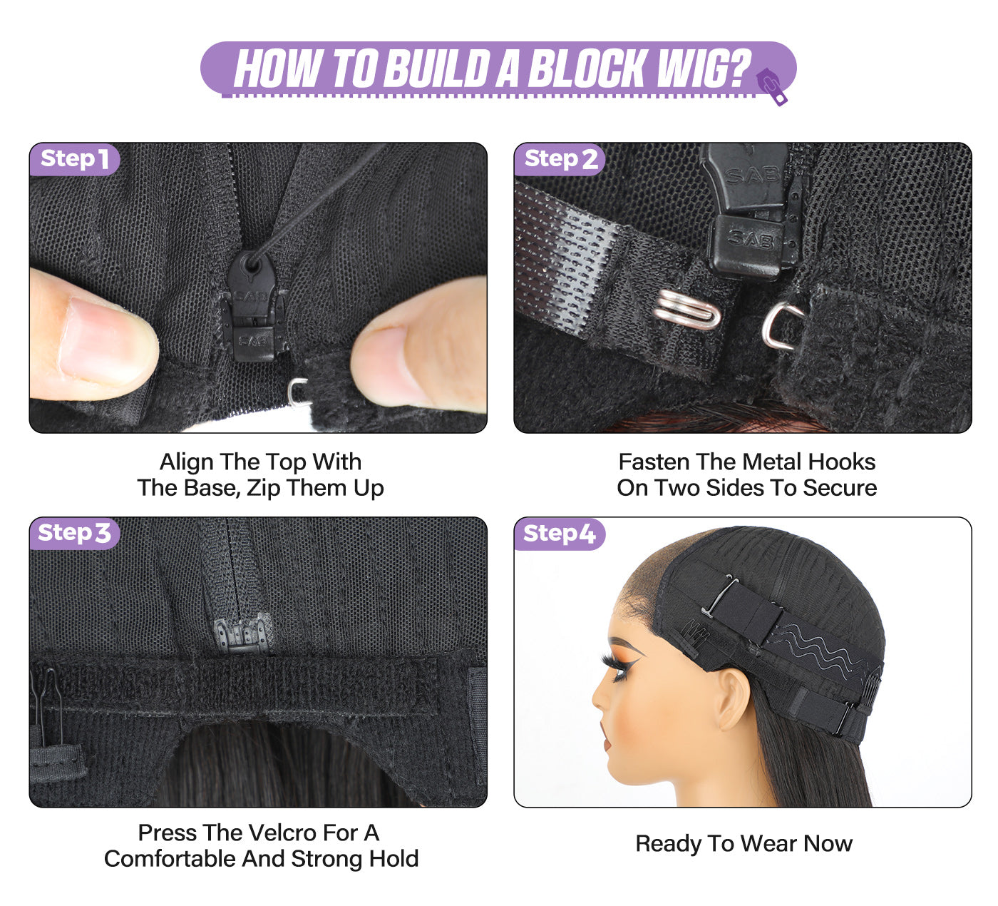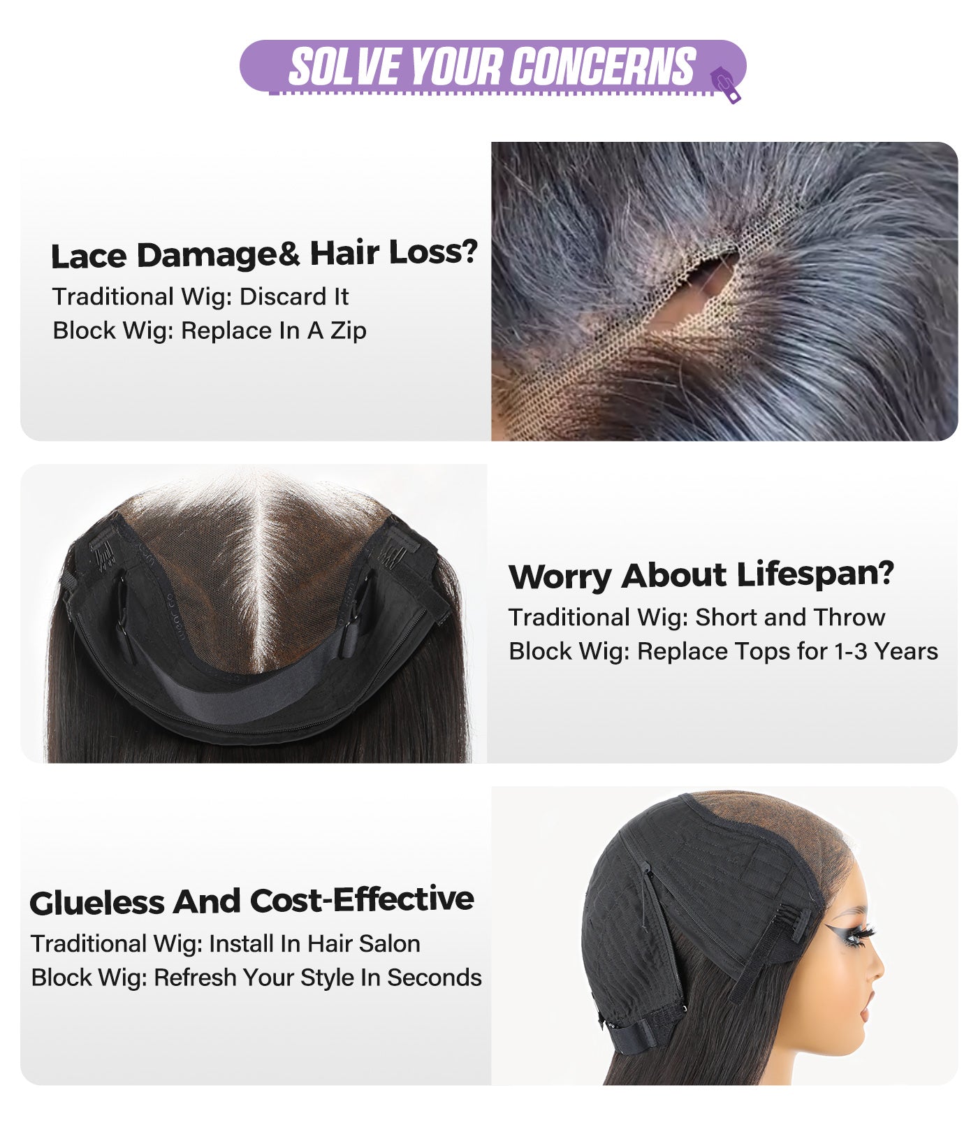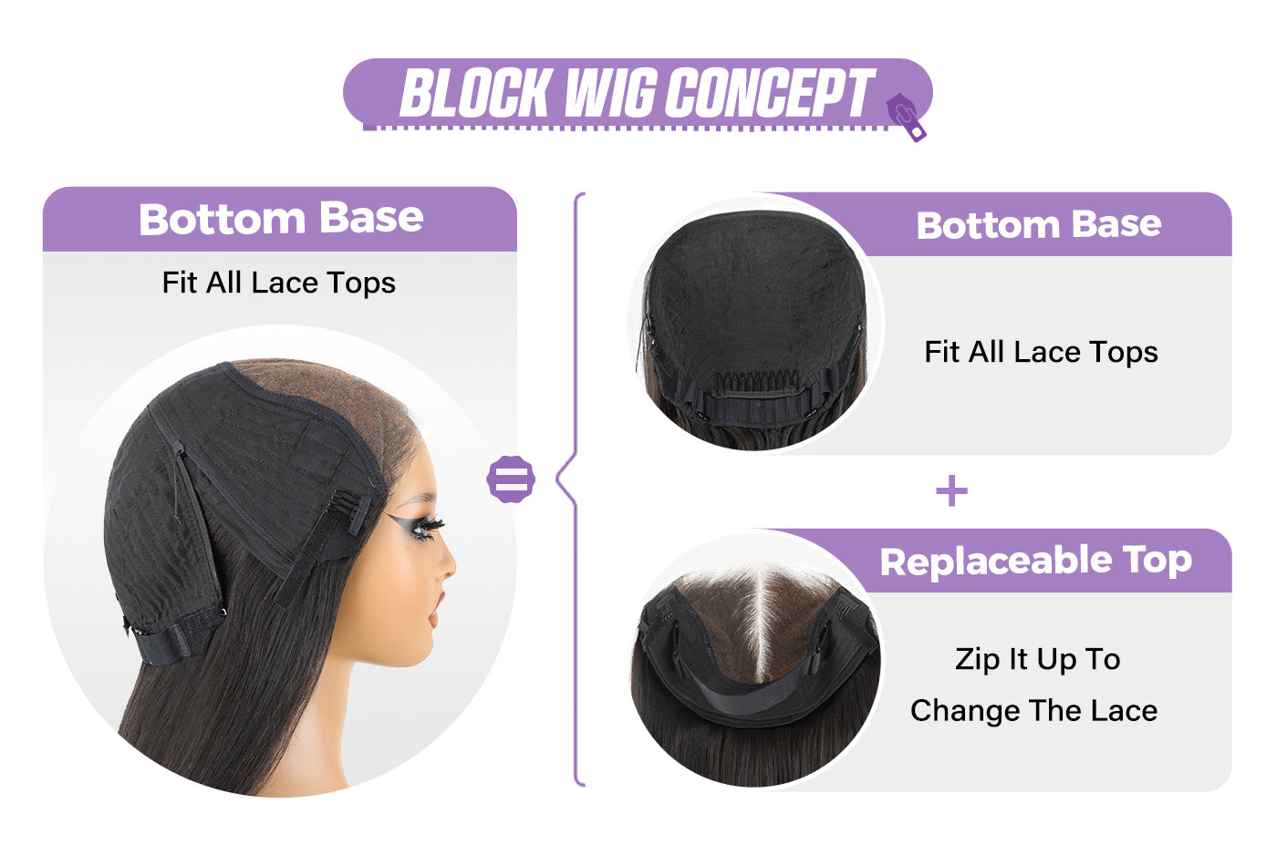 24h Shipping | Wigari Block Wig Straight Hair Bleached Knots Wig With Optional Replaceable Zip Lace Tops