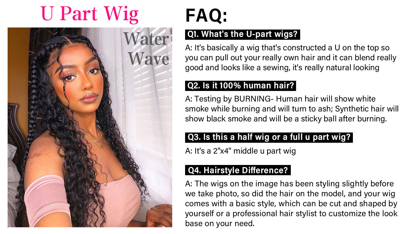 U Part Wigs Human Hair Wigs for Women Brazilian Water Wave Remy Human Hair Glueless Full Head Clip in Half Wig U Shape Wig